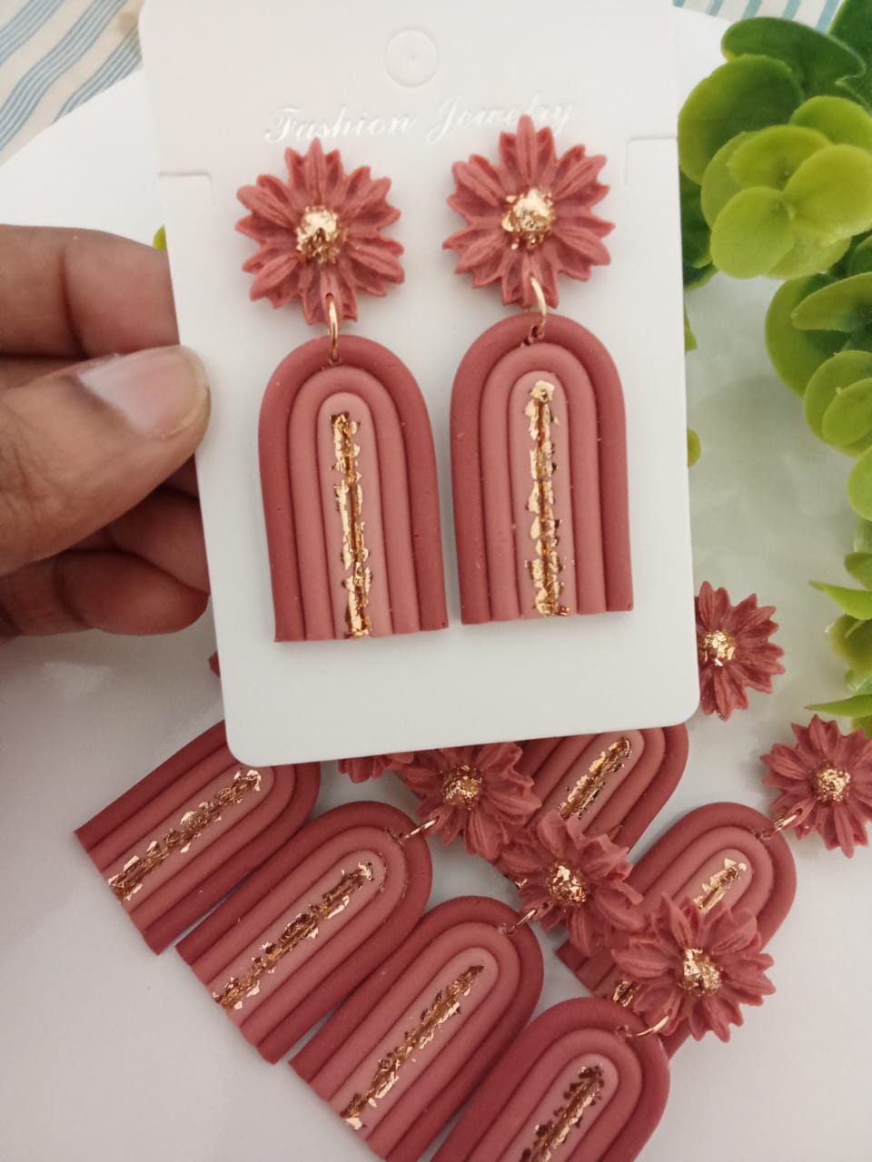These *handmade polymer clay earrings* are a perfect addition to your jewelry collection. Crafted with love and positive energy, these earrings bring a fresh, cheerful touch to any outfit. Designed for elegance and comfort, these earrings are lightweight and perfect for everyday wear, especially for those with sensitiveÂ
