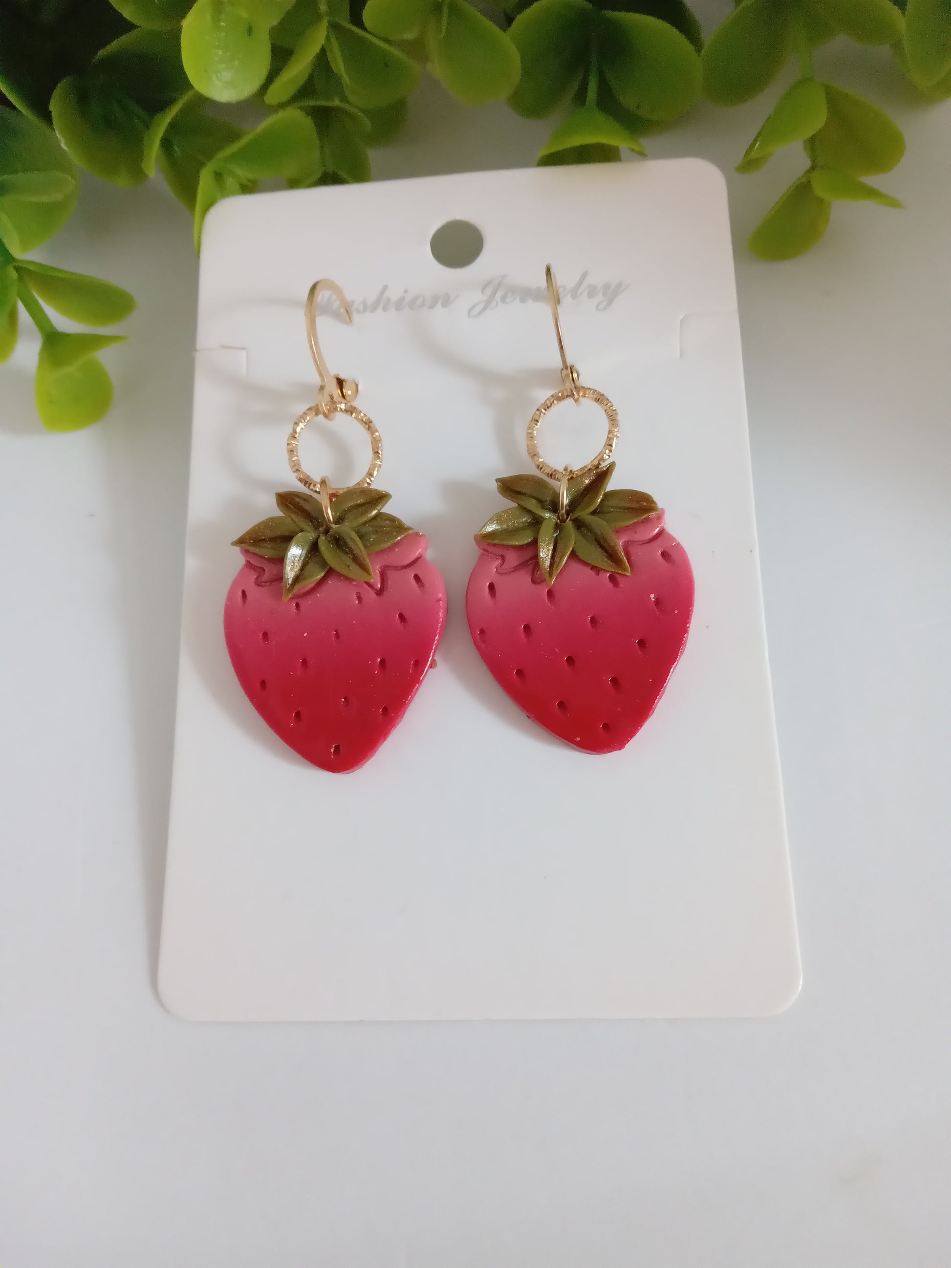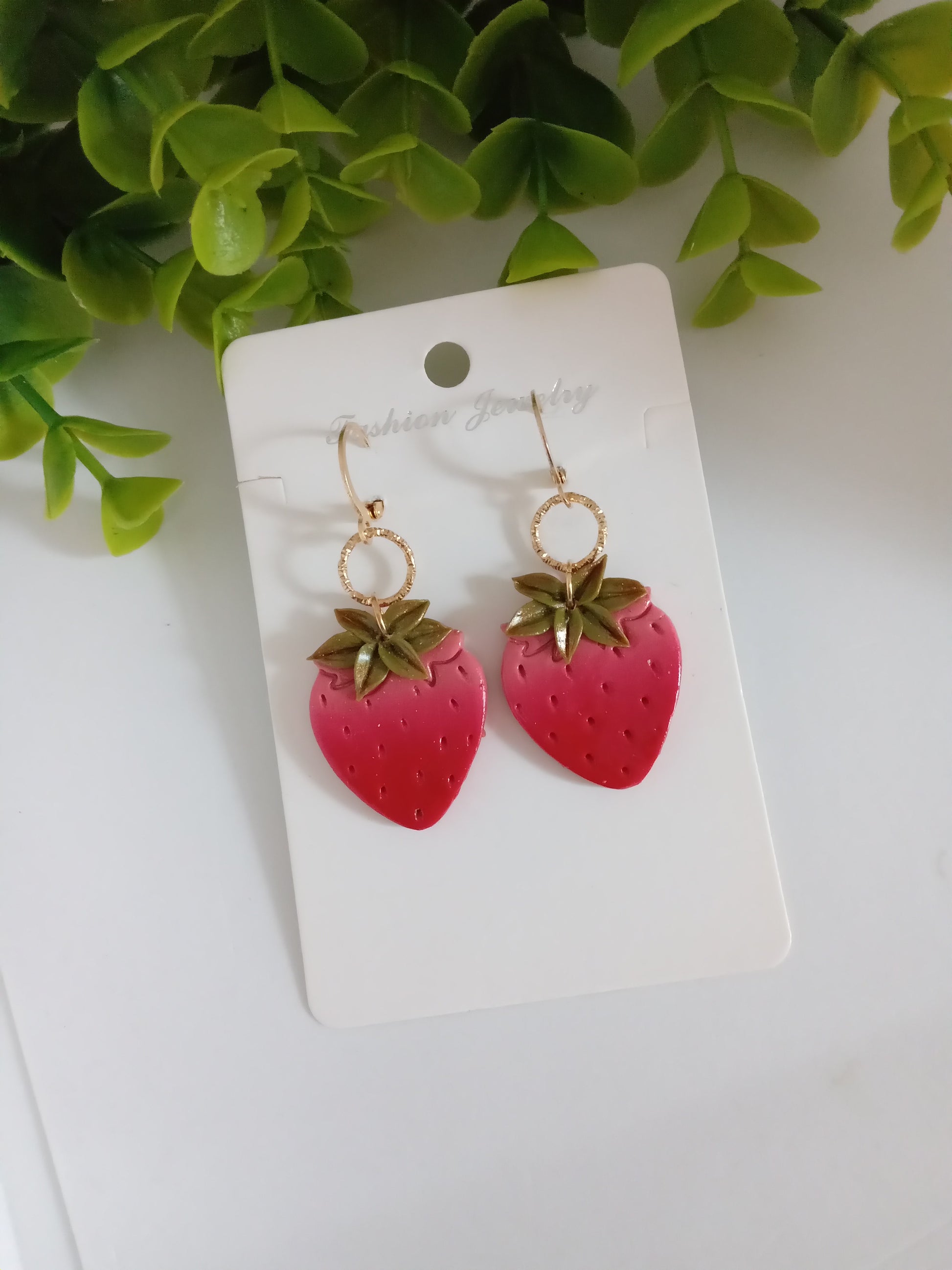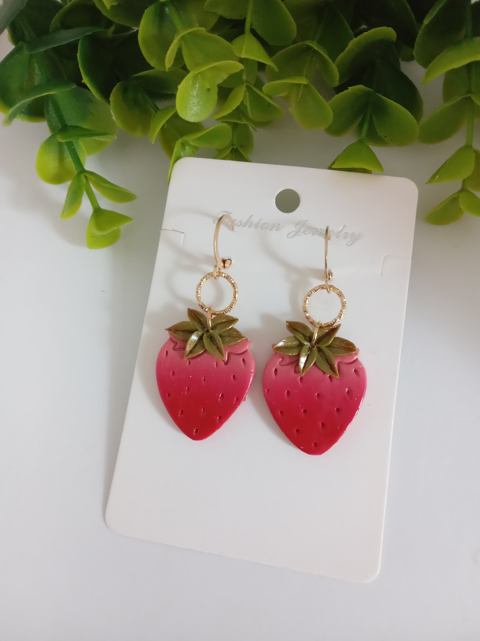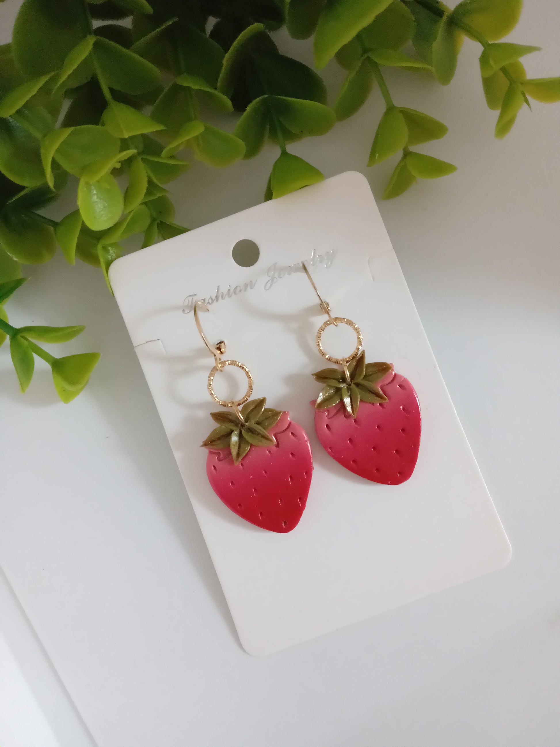 Handmade Strawberry Dangle Earrings- Cute Polymer Clay Fruit Jewelry for women & Girls