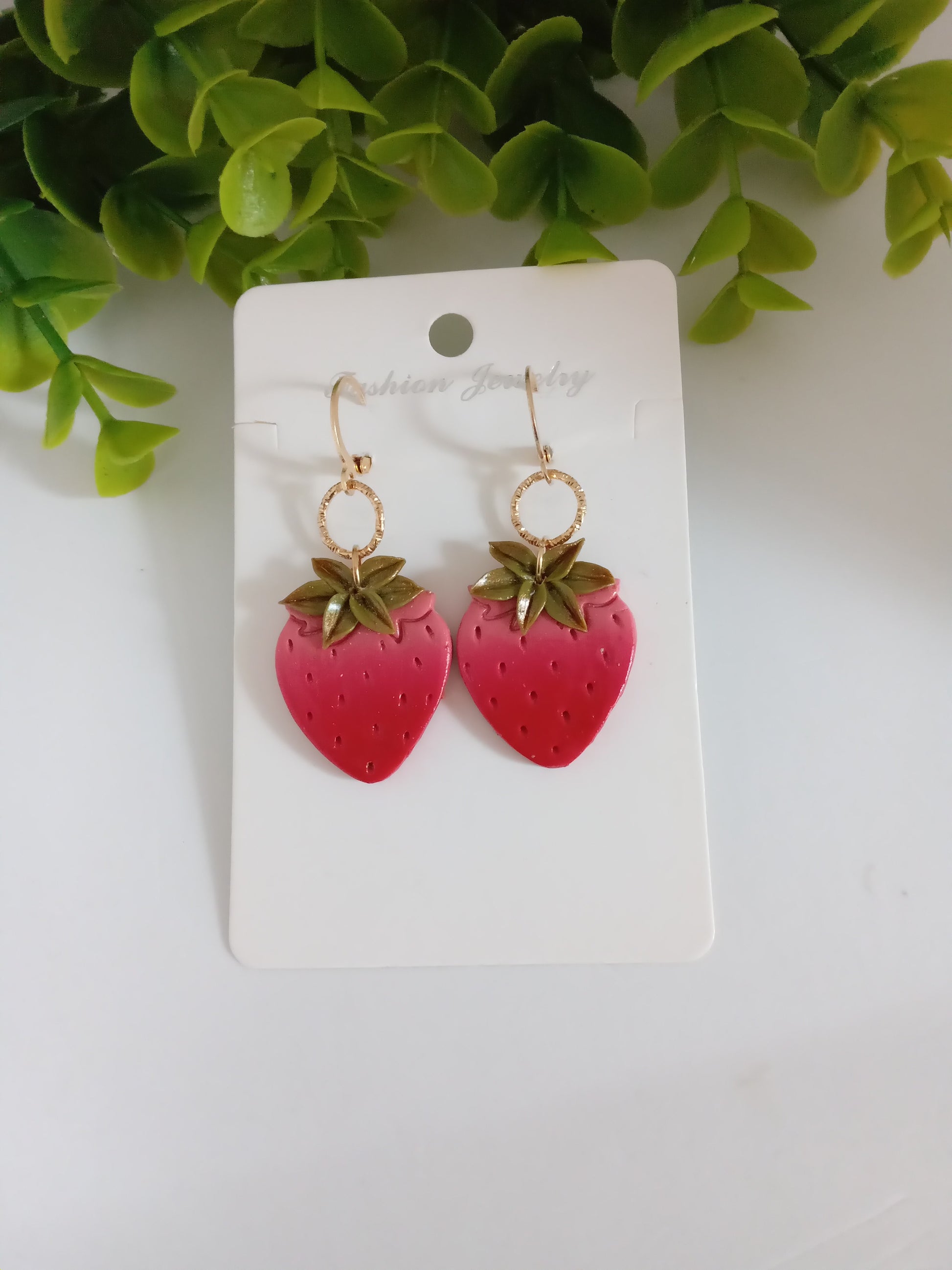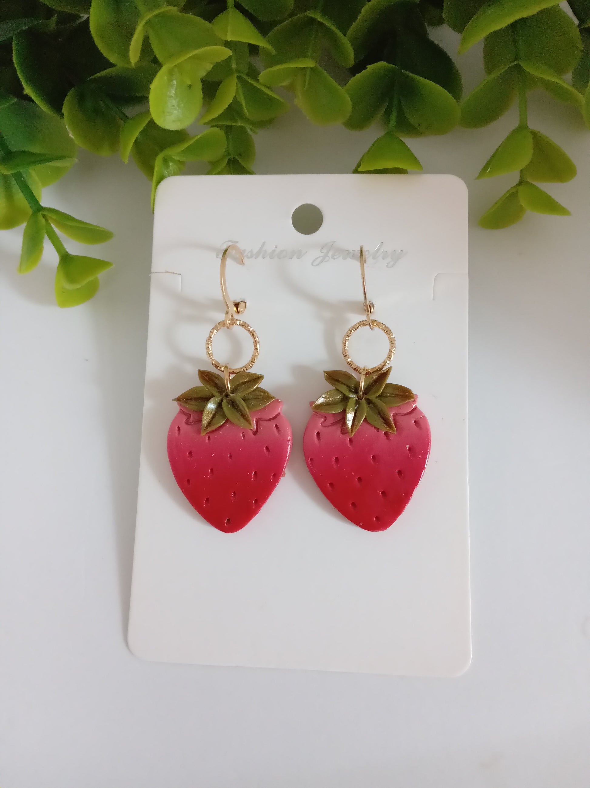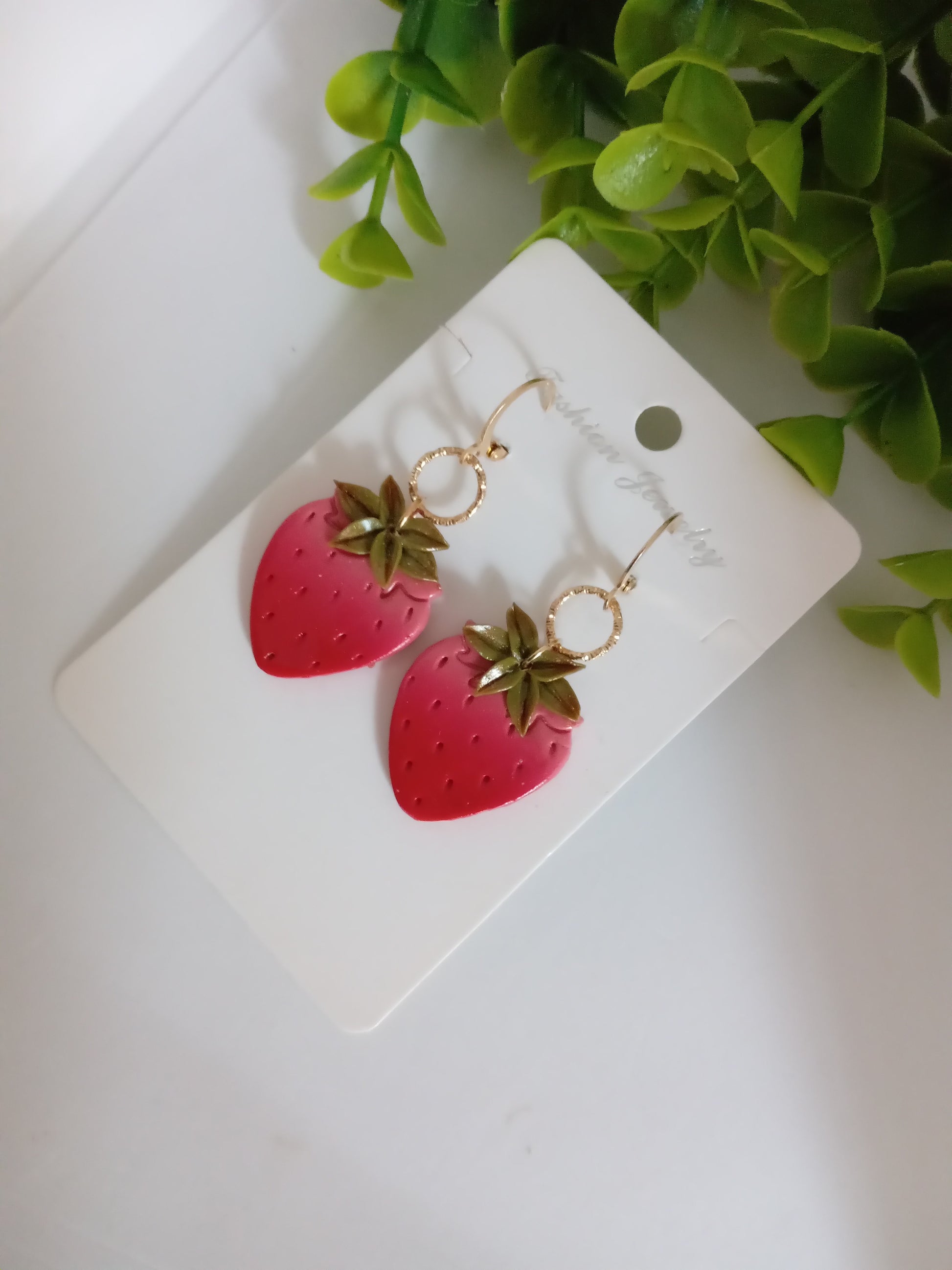 Handmade Strawberry Dangle Earrings- Cute Polymer Clay Fruit Jewelry for women & Girls