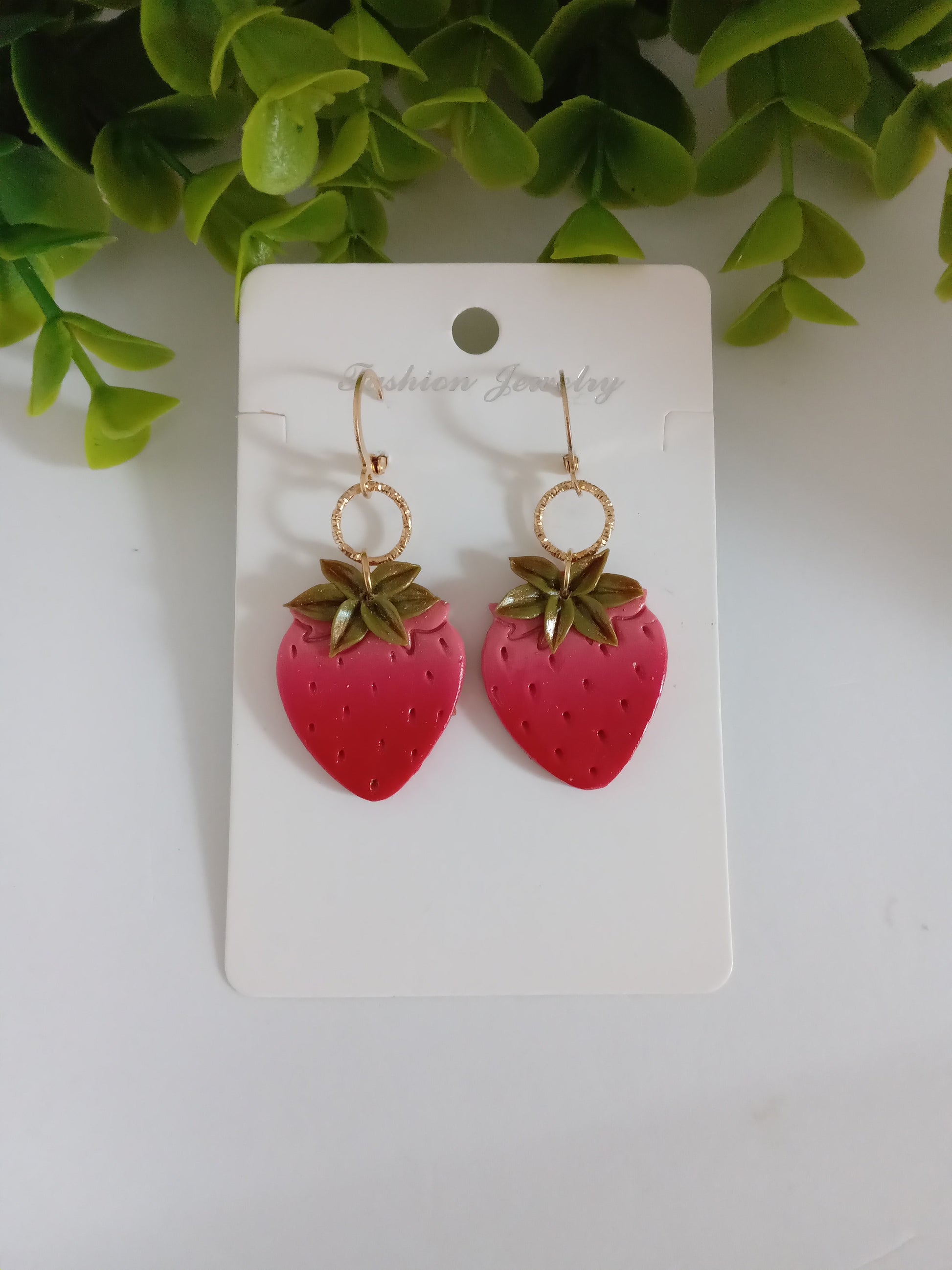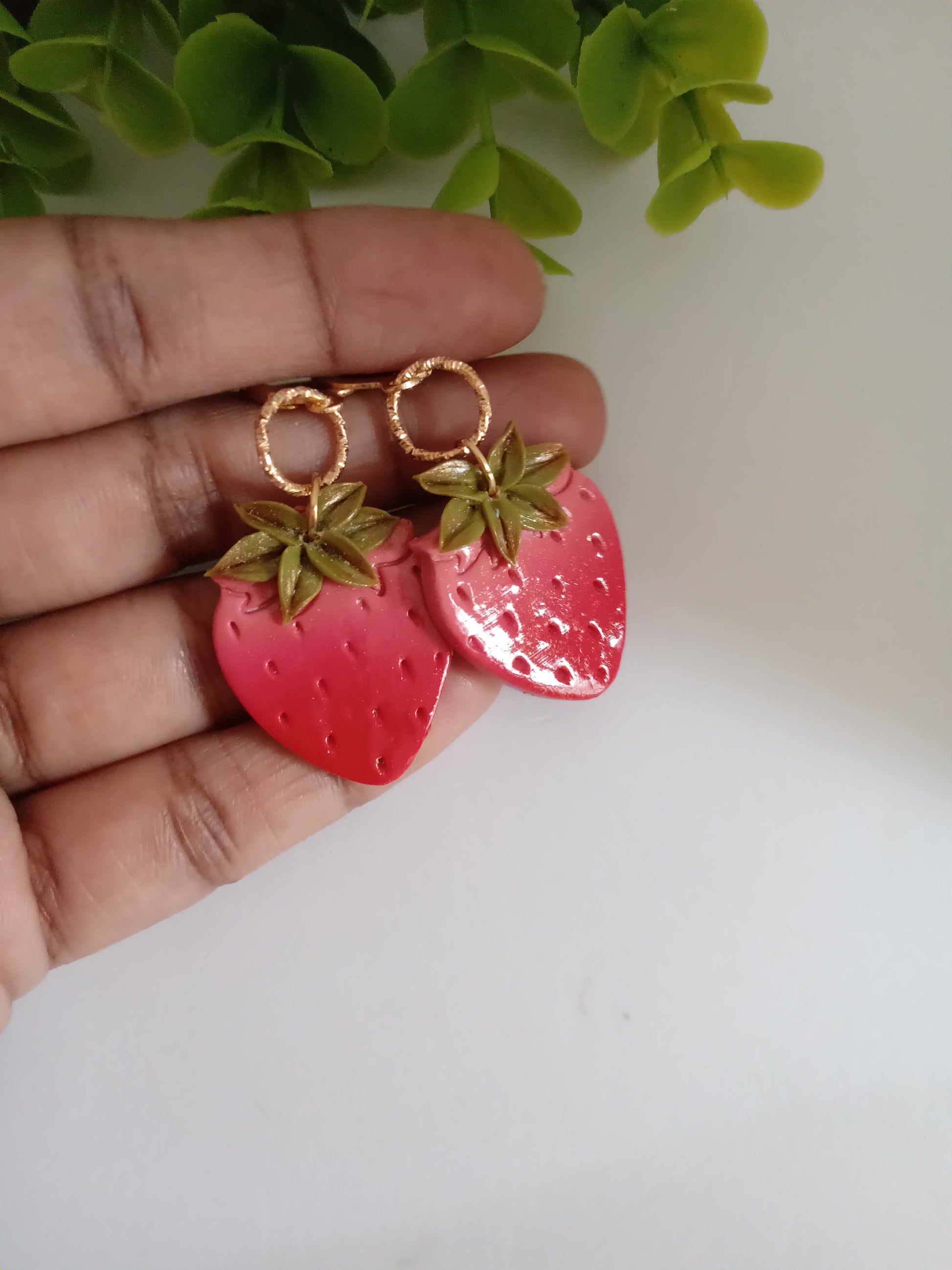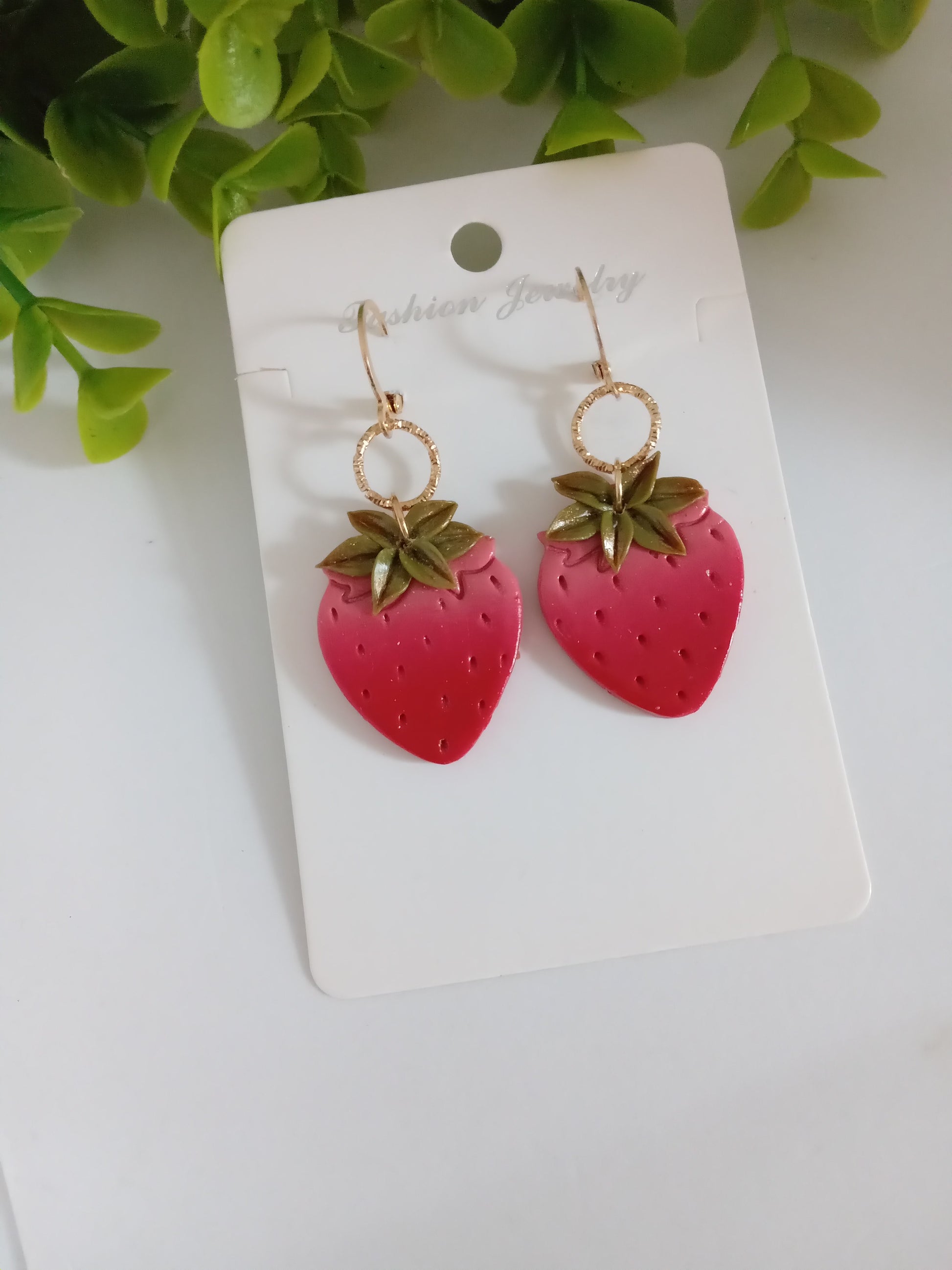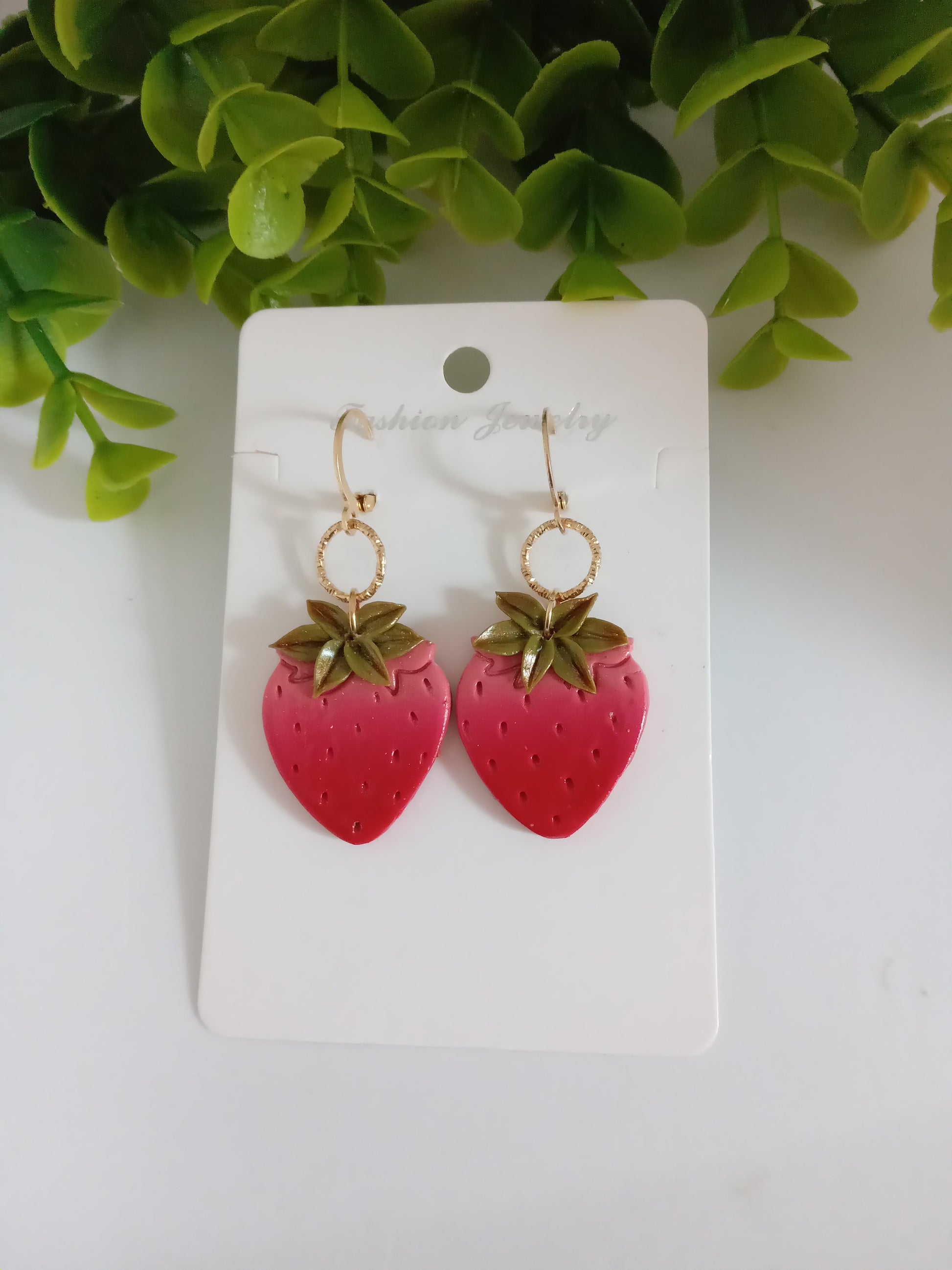 Handmade Strawberry Dangle Earrings- Cute Polymer Clay Fruit Jewelry for women & Girls