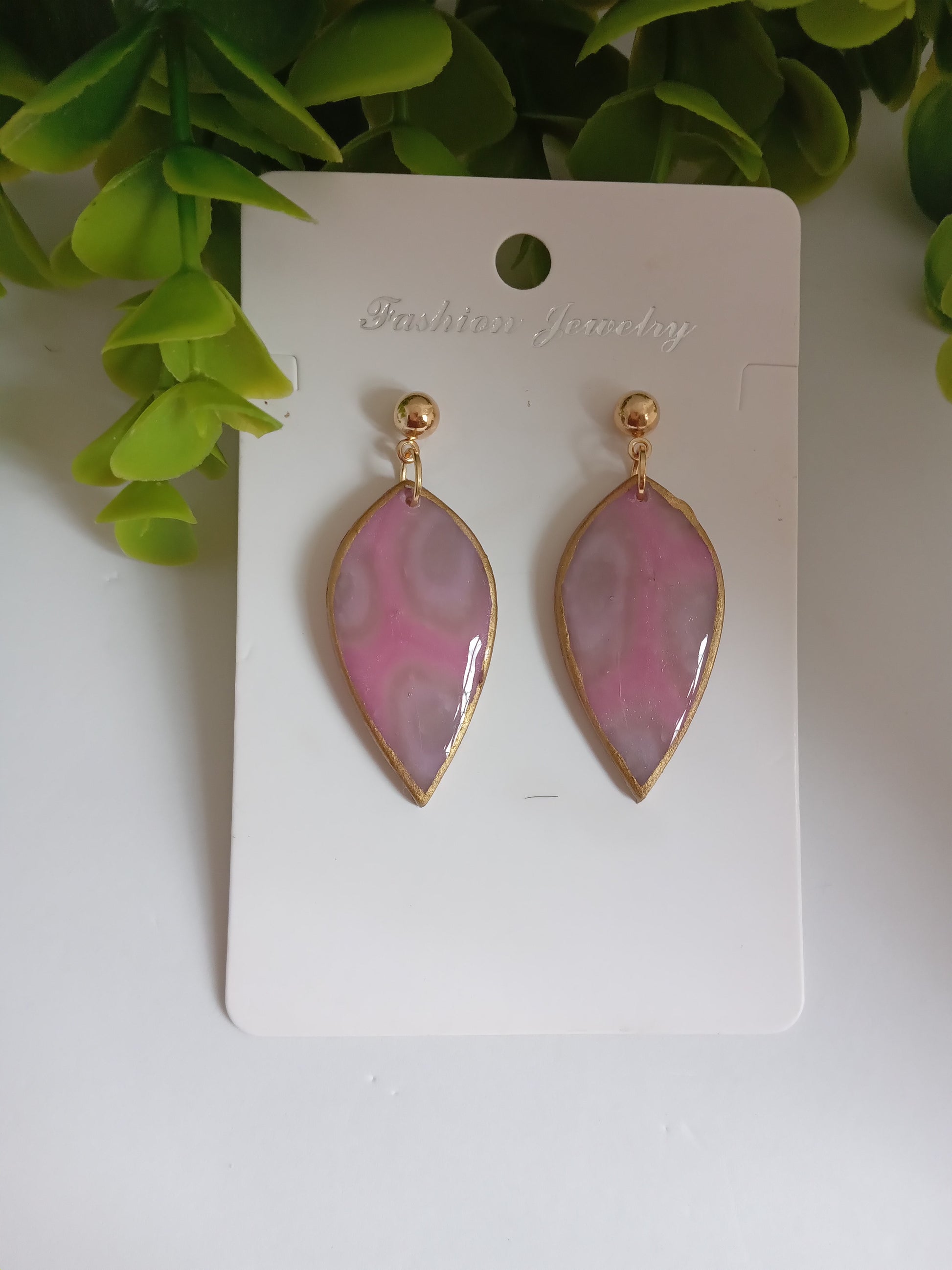 Bring elegance and charm to your look with these handmade pink teardrop dangle earrings, crafted with love and care from high-quality polymer clay. The glossy finish with soft pink and grey marbled tones gives each piece a unique, natural stone-inspired effect—making them perfect for everyday wear or special occasions.